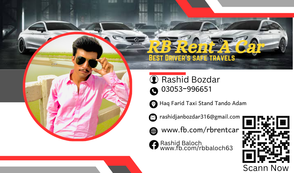 میں تمام لوگوں کو ٹنڈو ادم میں آر بی رینٹ اے کار کی گاڑیاں استعمال کرنے کا مشورہ دوں گا تمام بہترین سروسز ہیں تمام بہترین گاڑیاں اور تمام بہترین ڈرائیور ہیں